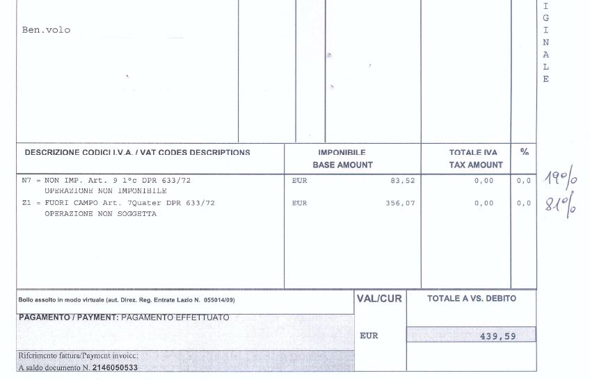 Fattura Alitalia – 2
